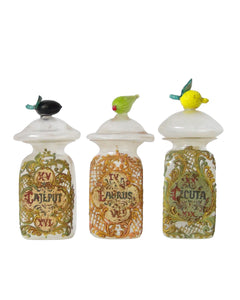 Set of three Venetian crystal pharmacy jars (Laurus - Cajeput - Cícuta). End of the XIXth century - early XXth century