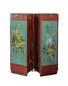 Bar de voyage en trompe l’oeil de malle de voyage, decor aux chinois. Debut XXeme