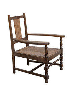 Fauteuil en bois avec assise et dossier en paille. Années 50.