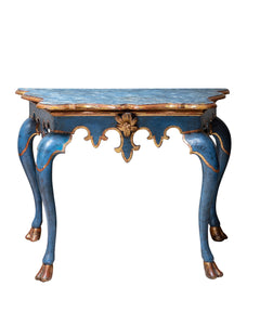 Console bleu et dorée en bois sculpté. Italie. XVIIIème siècle