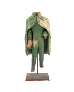 Statue représentant le corps d'un soldat avec une couche en bois sur une socle
