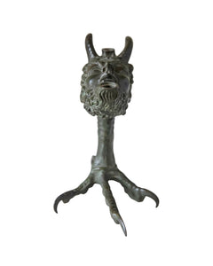 Lampe à huile en bronze en forme de satyre avec socle en forme de griffe