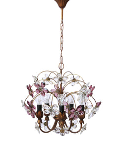 Lustre avec une structure en laiton en forme de branches et de fleurs colorées en cristal avec cinq porte-lumières. Italie