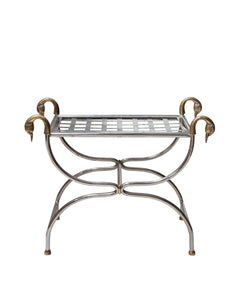 Table d'appoint "Lygne" avec structure en fer, cygnes sculptés en bronze et plateau en métal tressé