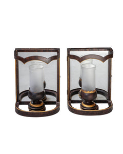 Paire d'appliques murales "Trompe l'oeil" en bois polychrome avec miroir intérieur. Début du XXème siècle