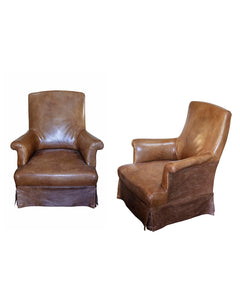 Paire de fauteuils crapauds en cuir fauve, debut XXème siècle