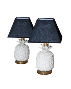 Paire de lampes en laiton et céramique blanche en forme d'ananas. XXème siècle