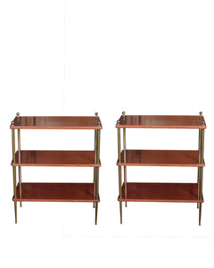 Paire de tables d'appoint en bois et structure en laiton à trois niveaux. Année 1950