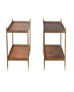 Paire de tables d'appoint "Maison Jansen" en laiton et cuir