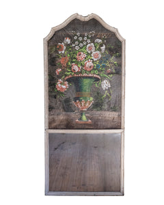 Trumeau de cheminée avec miroir original et peinture sur tissu représentant un vase à fleurs. France. XIXème siècle