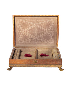 Caja joyero forrada de cuero grabado con pies de latón e interior de terciopelo