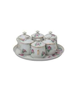 Juego de seis “cremiers” de porcelana con motivos de flores con plato
