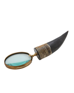 Lupa de escritorio con mango grande de asta negra tallada y latón