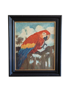 Papagayo pintado en óleo sobre lienzo firmado. C. Behr. 1944