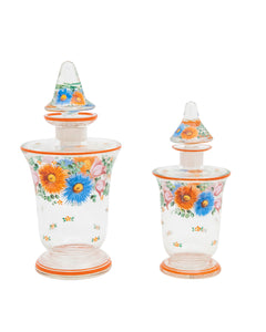 Pareja de frascos de cristal pintados con flores