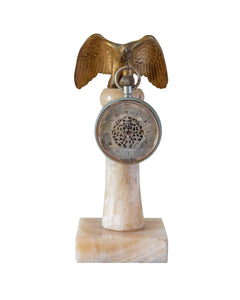 Reloj turco soportado por águila de bronce sobre peana de mármol blanco